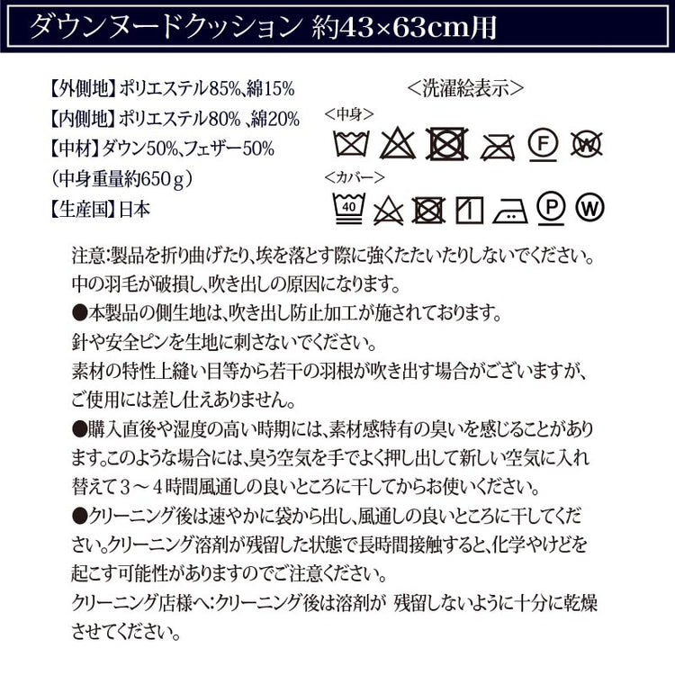 側サイズ : 約43cm×63cm組成 : 外側地 ポリエステル85% ・綿15% 内側地 ポリエステル80%・綿20% 中身 ダウン50%・スモールフェザー50%生産国 : 日本特徴 : 1.機能クッションブランド『andmore®?』製品 2.周囲やファスナーなど高品質。 3.生地は高品質の光沢サテン生地を使用。 4.着脱式で中身のダウンを取り出し可能。 5.高級ダウンを使用した羽毛クッション。 6.安心の日本製です。 7.お時間は頂戴致しますが、ご注文を頂いてから1点ずつ中身を詰めています。 8.『andmore®』製品は安心の30日間返品保証
